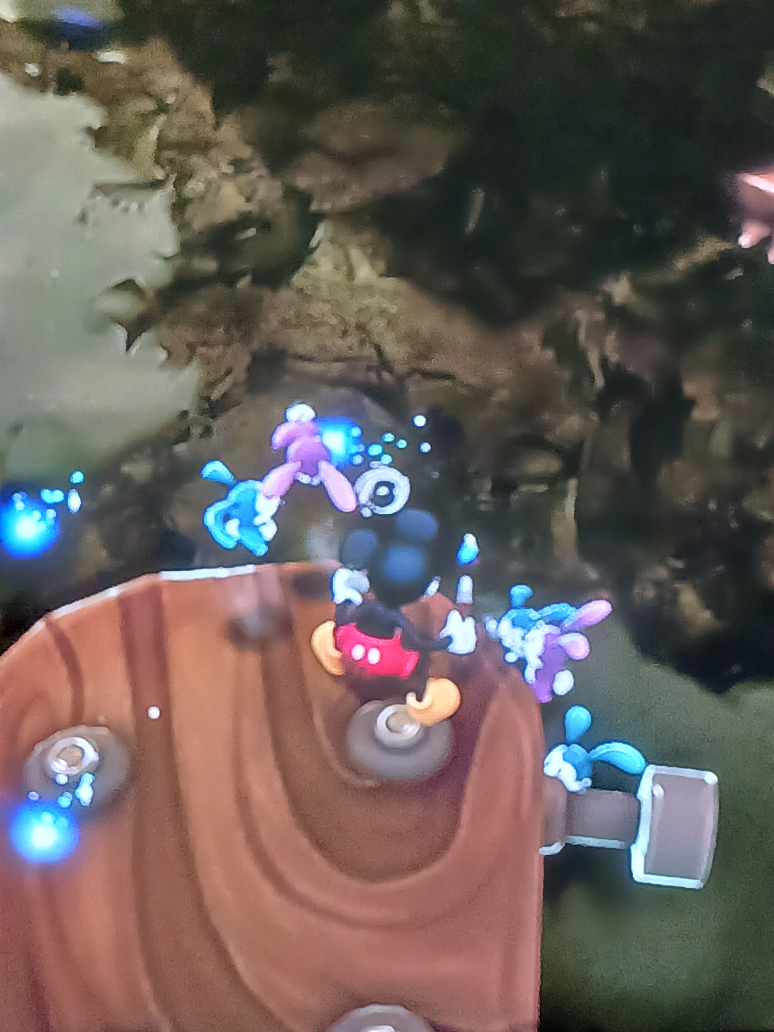 They can be distracted by the paintable TVs on Mickeyjunk Mountain, and, when distracted, will watch a clip from 'Steamboat Willie'. A TV Sketch produces the same effect. Either method of distraction can be ended by thinning the TVs or when the Sketch's effect expires. Aside from spinning them, Mickey can also spray Paint or Thinner on them causing them to curl up into a ball, stunned.