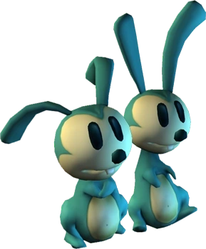 The Bunny Children are neutral toon characters in Epic Mickey. They resemble young, blue and pink versions of Oswald the Lucky Rabbit and are his and Ortensia's offspring. Because of the fact that their parents are the rulers of the Cartoon Wasteland, they are technically the princes and princesses to their parents' kingdom.