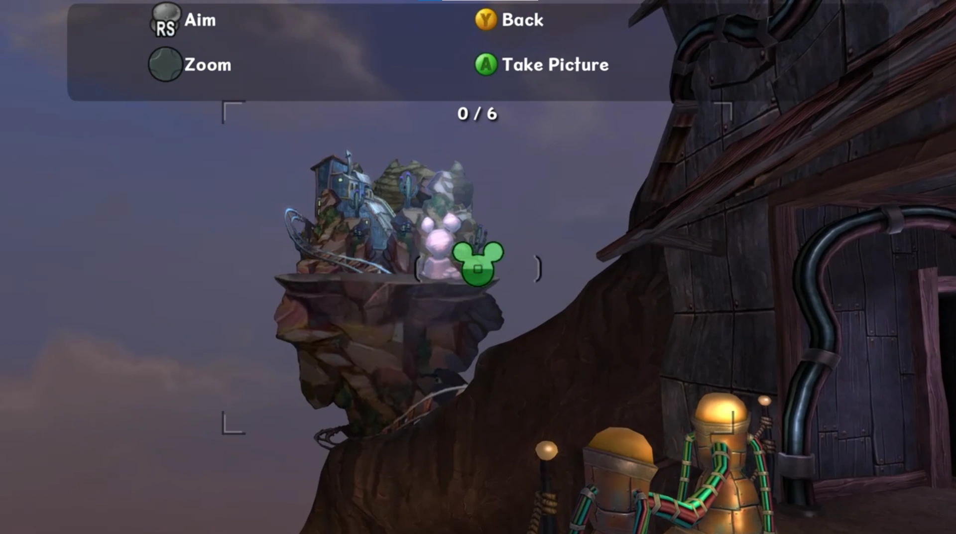 This area is two landmasses connected by a bridge made of Disney memorabilia. On the west landmass is the train and the Jiminy Cricket head. On the east landmass is the projector to the Disney Gulch Laboratory. Inside the Jiminy head is a shortcut which can be opened with a generator on the southern edge of the landmass.