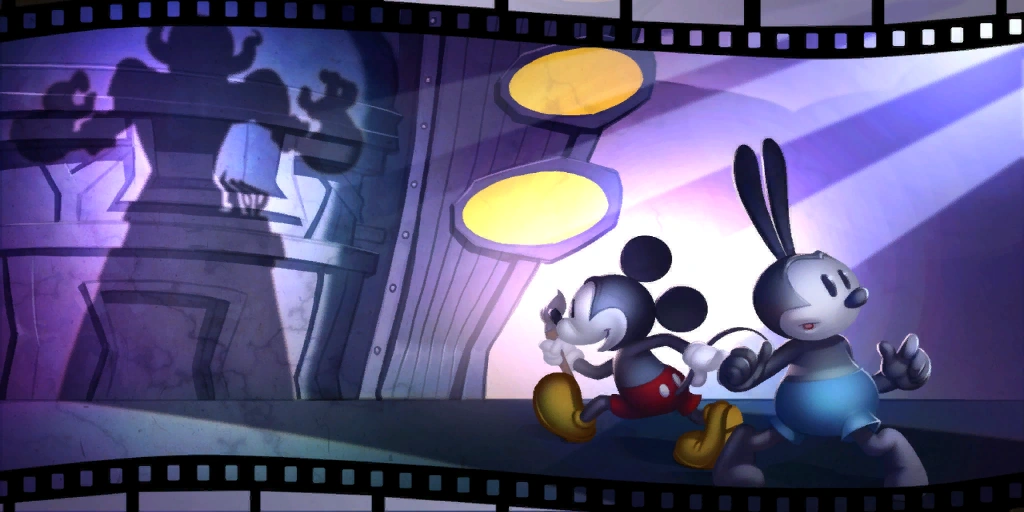 In this episode, Mickey and Oswald use the fixed Projector Screens to advance further and find the culprit that sabotaged the projector screens. Many new places are explored from Bog Easy to Prescott's Arena, where you fight the second boss.