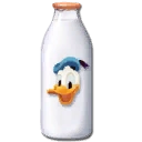 Milk Bottle | 1000 E-tickets | 1250 E-tickets | "This milk bottle has a picture of Donald Duck on it and is made from an unknown material." This is an item for the Watch the skies! quest. This item can be found on one of the walls in Fort Wasteland (following the paint path, saving the gremlin and not thinning the trees). |