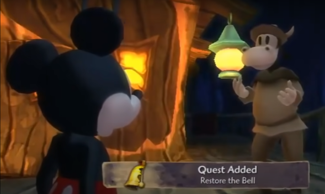 Restore the Bell is a Bog Easy Quest given to Mickey by Louis after returning from Lonesome Manor. Mickey must find the pieces of Bog Easy's bell, which the ghosts have scattered to the other hub areas.