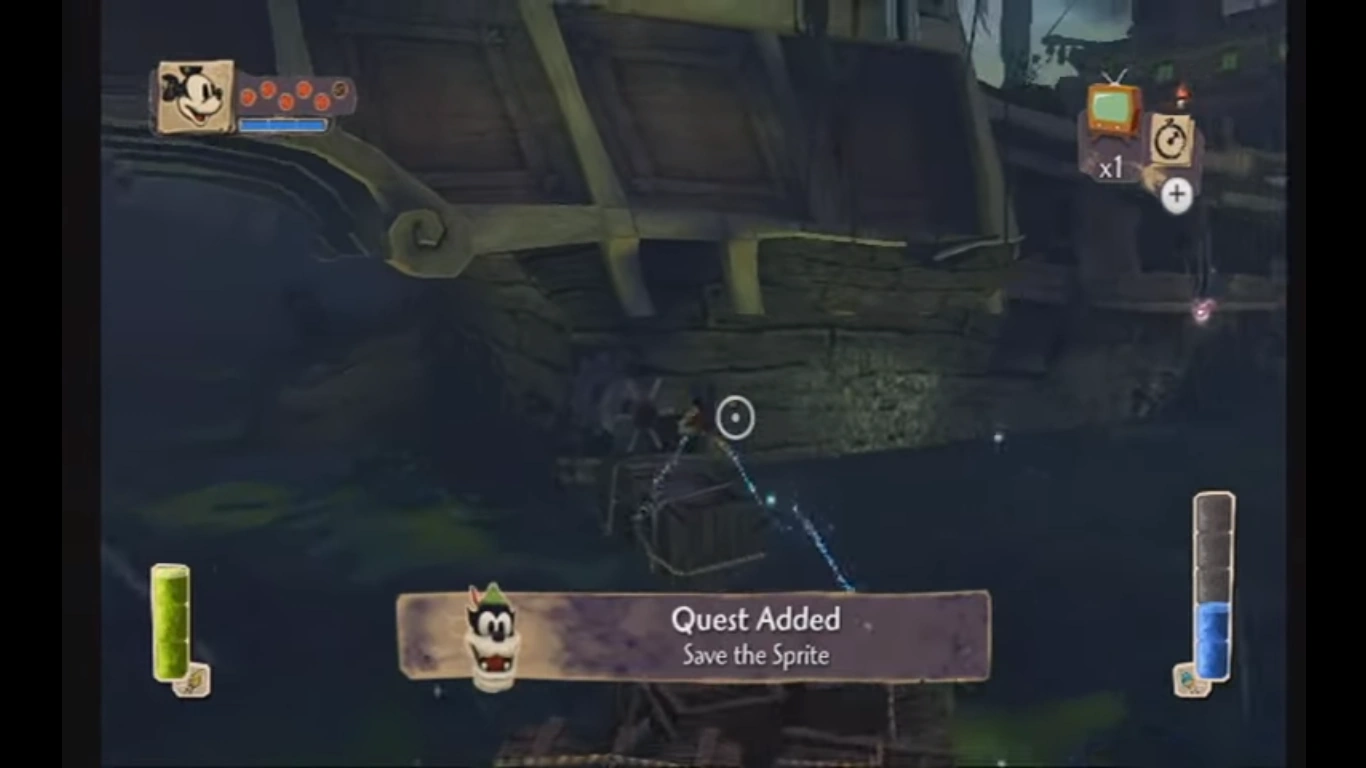 Save the Sprite is a quest given by Gremlin Gus upon arriving at the Jolly Roger. In this quest, Mickey has to find a way to reach the very top of the Jolly Roger to free the Sprite from the cage she was locked in by Animatronic Captain Hook.